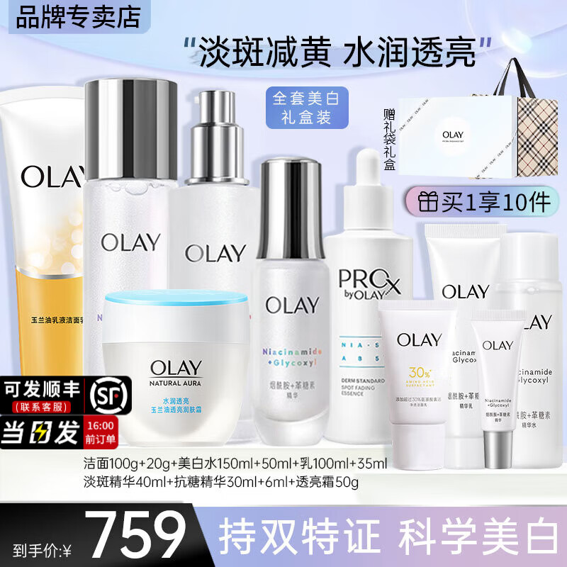 百亿补贴:玉兰油(OLAY)小白瓶美白水乳礼盒护肤化妆品套装女抗糖减黄提亮保湿生日礼物 【全套】双精华+洁面水乳霜