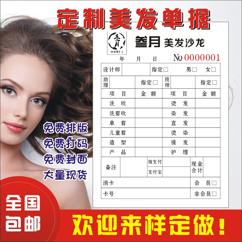 美发流水单定做理发店发廊收银单美容院美甲美睫足浴消费单二联三联收据记账本业绩日报表服务开单本定制印刷