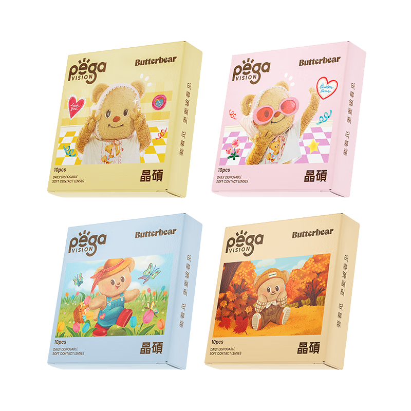 晶硕黄油小熊联名香水粉水美瞳日抛彩色隐形眼镜10片芝士布丁350度