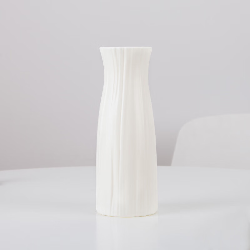 艾格辰创意塑料花瓶小号插花器家居饰品婚庆客厅摆件仿釉防摔 仿瓷花瓶 奶白色 7.8*20.5cm