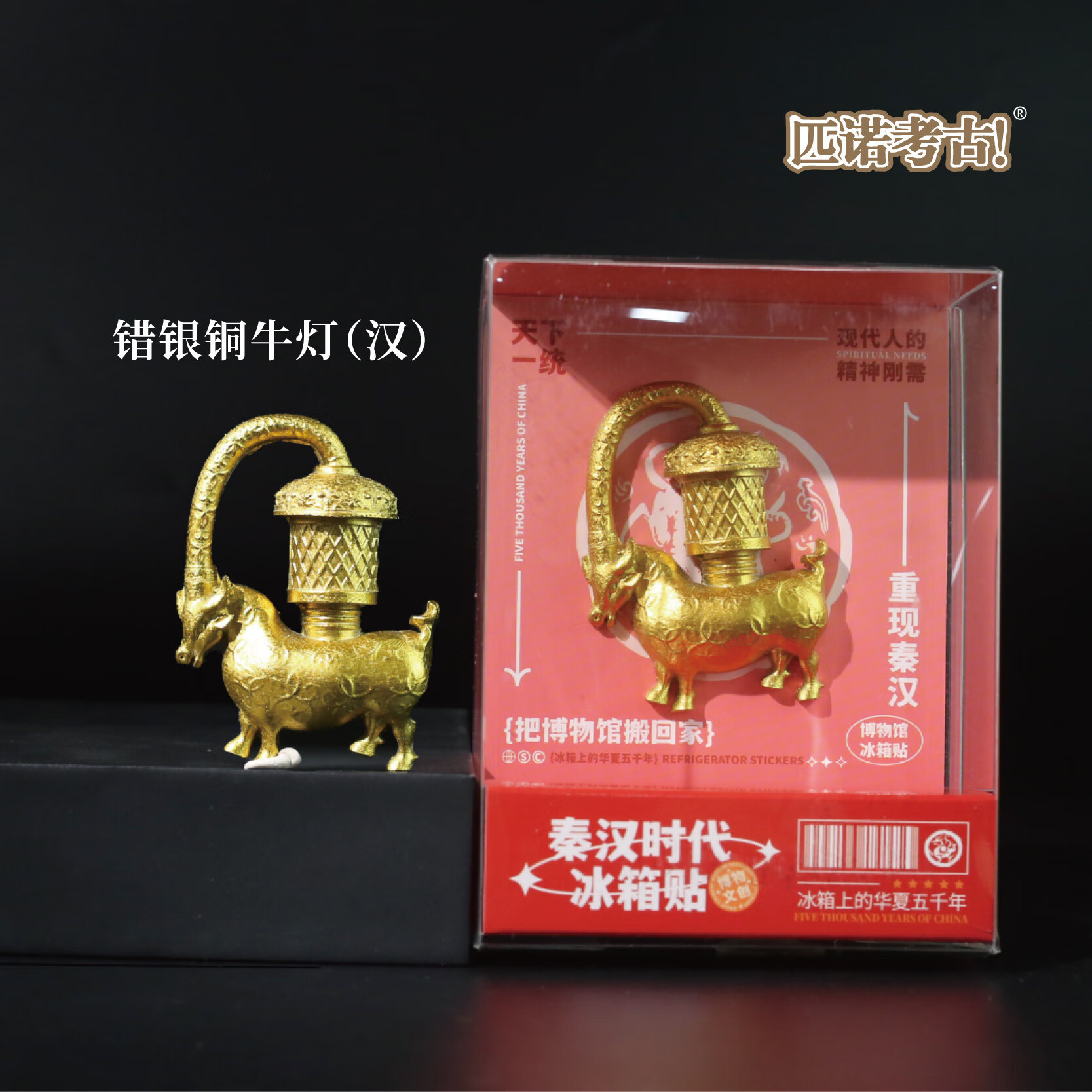 西安文创纪念品秦始皇兵马俑创意立体树脂冰箱贴装饰品秦杜虎符 秦汉时代.错银铜牛灯(汉【单个价格】