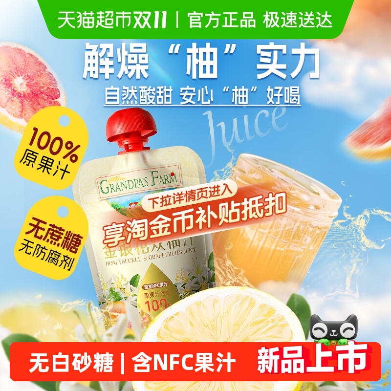百亿补贴:爷爷的农场 金银花双柚汁儿童宝宝果汁饮料金银花柚子汁100ml*20袋nfc苹果汁
