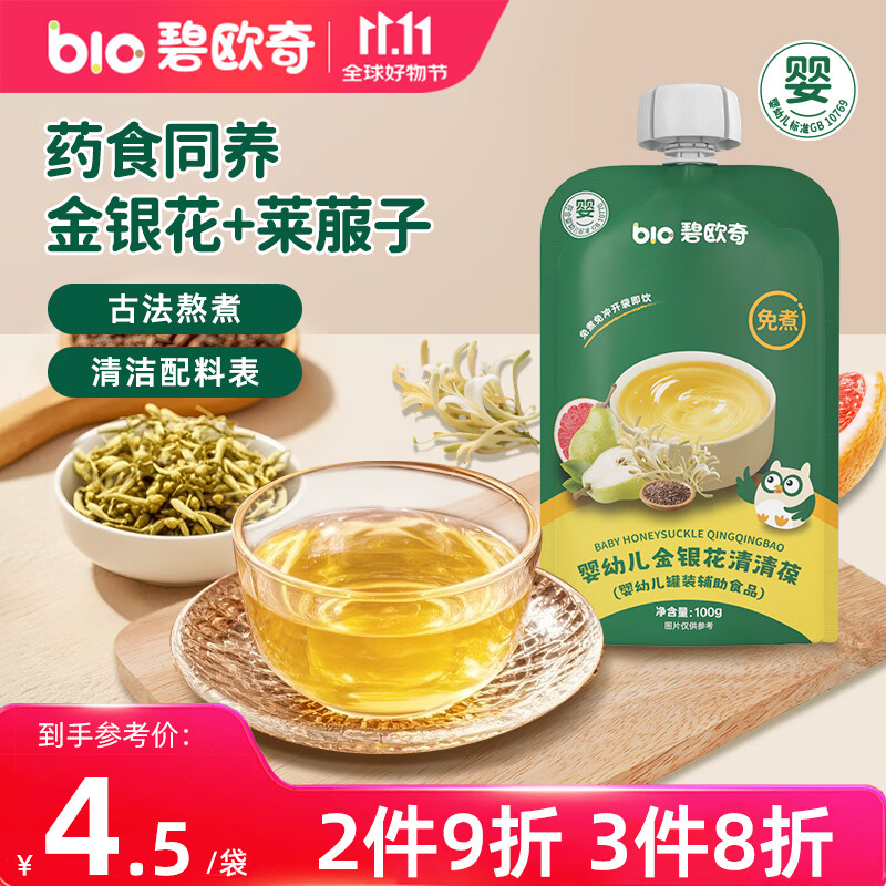 碧欧奇婴幼儿金银花柚子汁清清葆100g*3 果汁饮品梨汁宝宝饮料儿童辅食