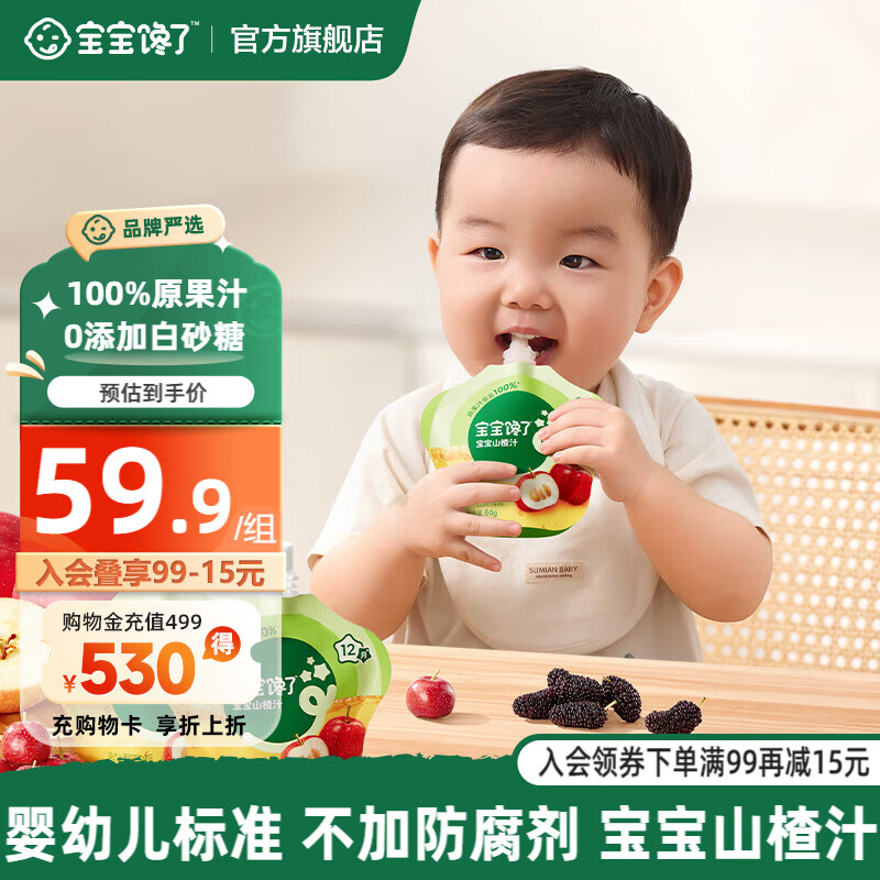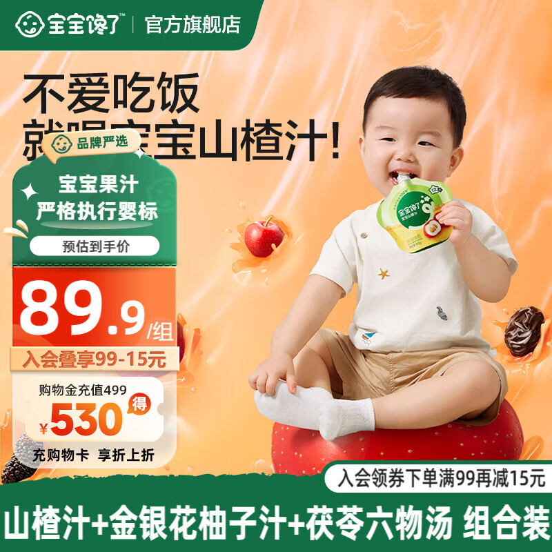 宝宝馋了婴标金银花柚子汁山楂汁宝宝果汁零添加白砂糖水果饮品儿童饮料 【20袋】婴幼儿山楂汁 100g*20袋