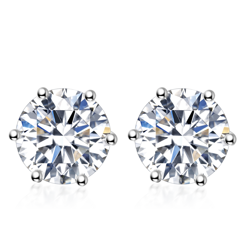 我爱钻石网铂金钻石耳钉女18k金耳饰结婚六爪裸钻定制送女友情人节礼物 【铂金PT950】共50分FG色 钻石耳饰