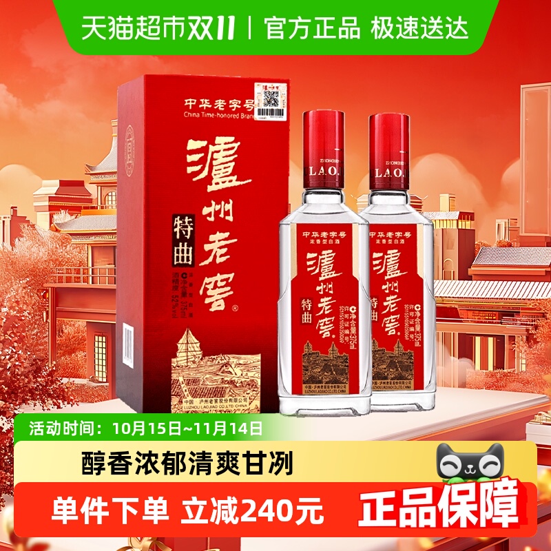 泸州老窖特曲52度浓香型高度国产白酒375ml*2盒礼盒送礼婚宴纯粮