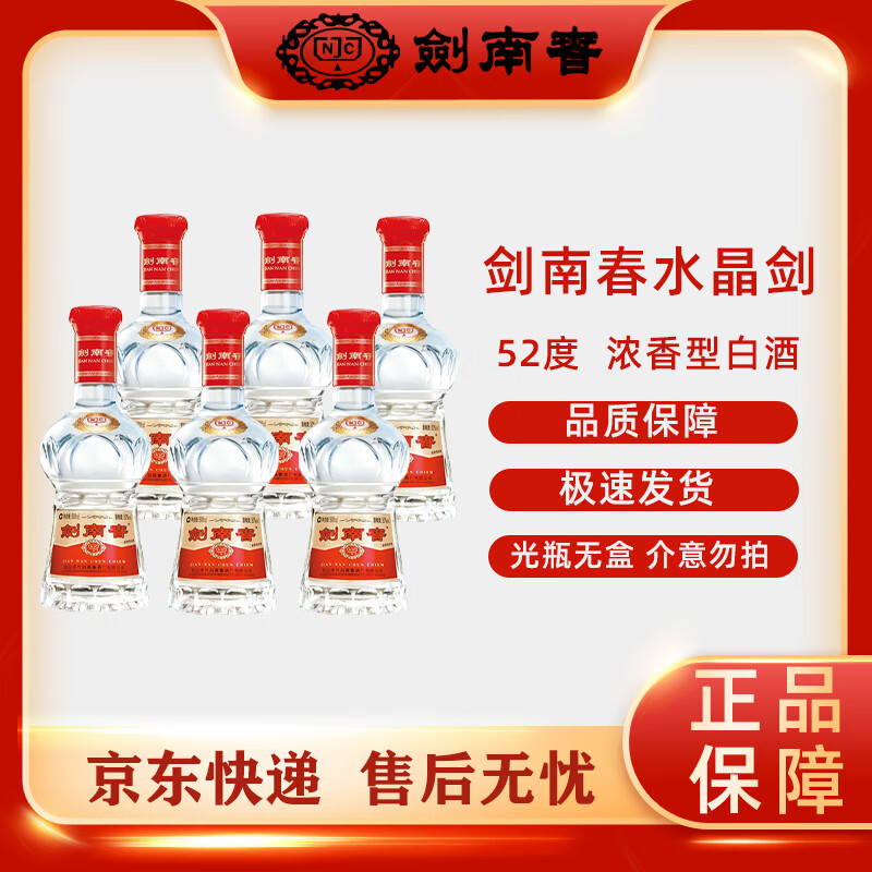 剑南春水晶剑 浓香型白酒 52度500ml 过节送礼婚宴商务宴请高端白酒 52度 500mL 6瓶 水晶剑裸瓶无盒