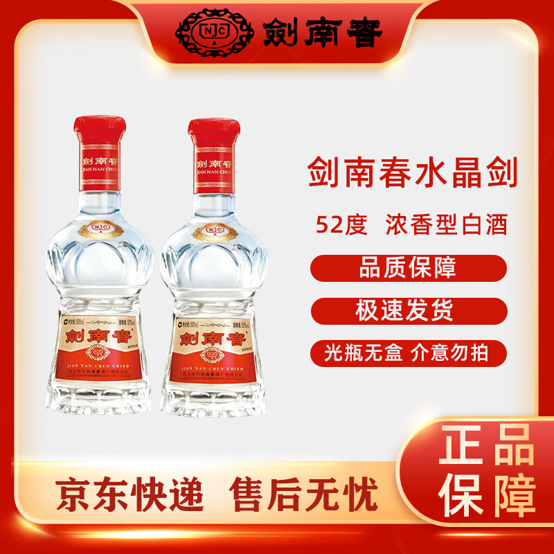 剑南春水晶剑 浓香型白酒 52度500ml 过节送礼婚宴商务宴请高端白酒 52度 500mL 2瓶 水晶剑裸瓶无盒