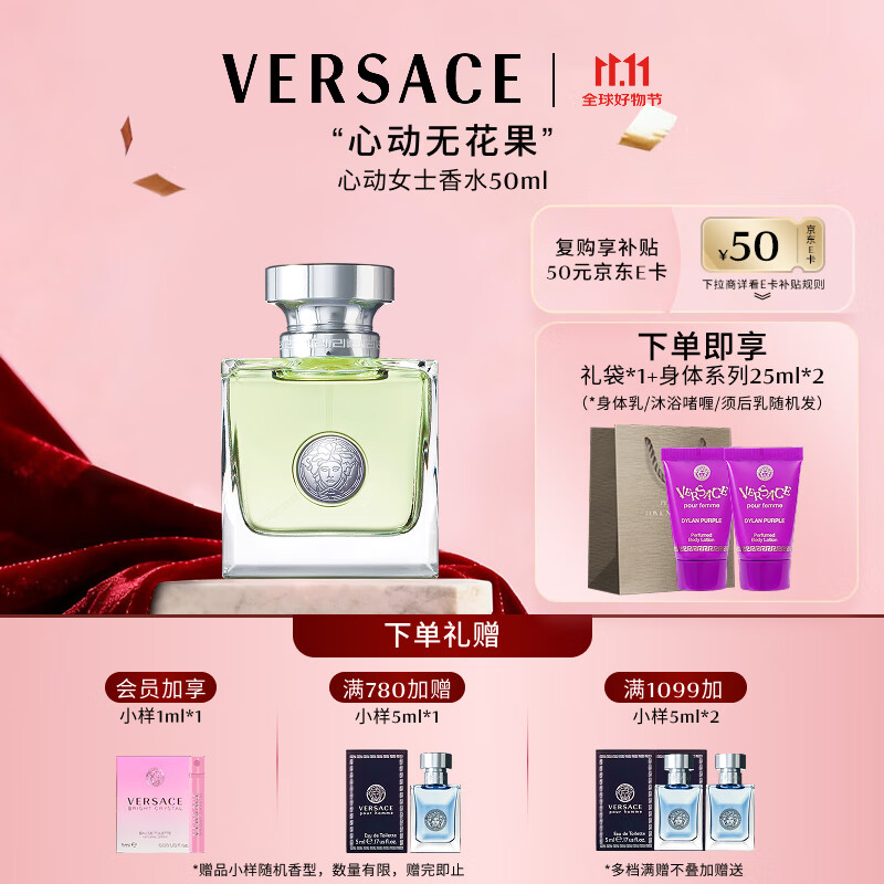 范思哲(VERSACE)臻挚粉钻女士浓香水50ml 赠同款Q香5ml 礼物