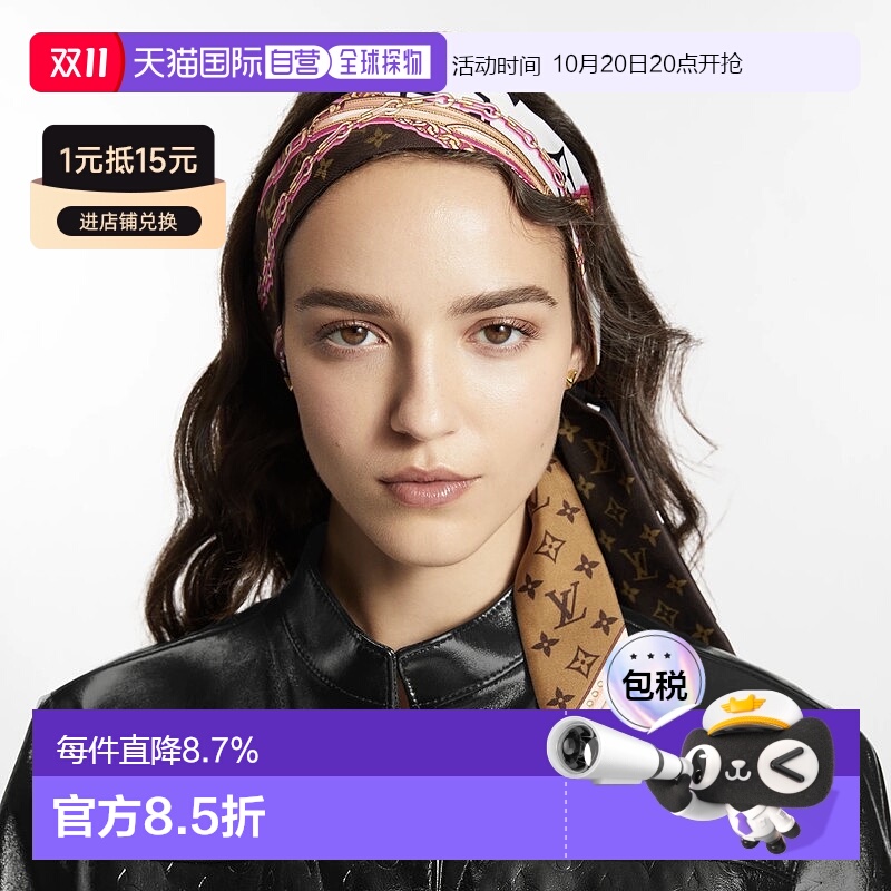 自营1h可退 欧洲直邮LOUIS VUITTON路易威登 女士黑色真丝丝巾时