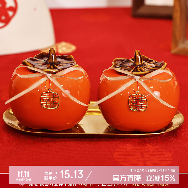 嘻吻乐结婚订婚布置装饰摆件全套用品大全摆台订婚宴男方女方网红小物件 陶瓷柿子1对【喜事连连】