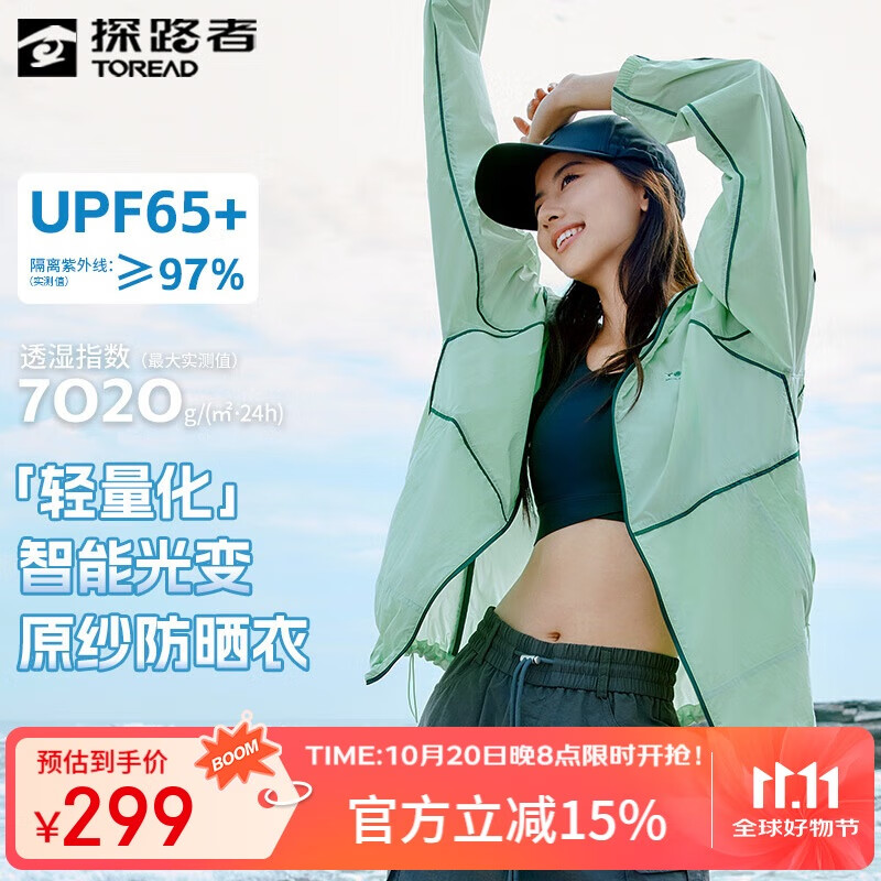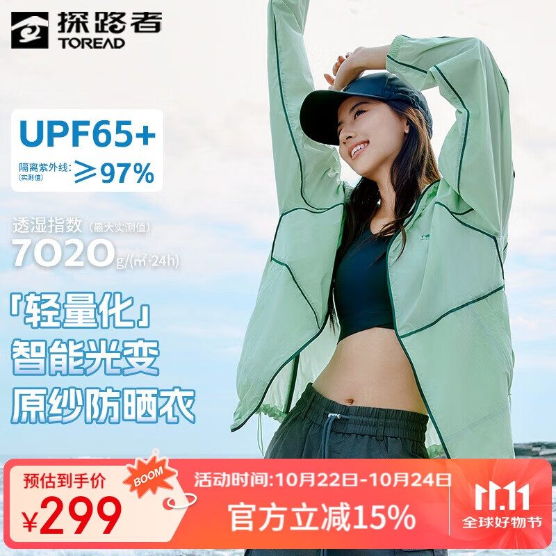 探路者(TOREAD)时尚防晒衣服皮肤衣UPF50+户外超轻透气防紫外线外套女2025年新款 绒布绿 L