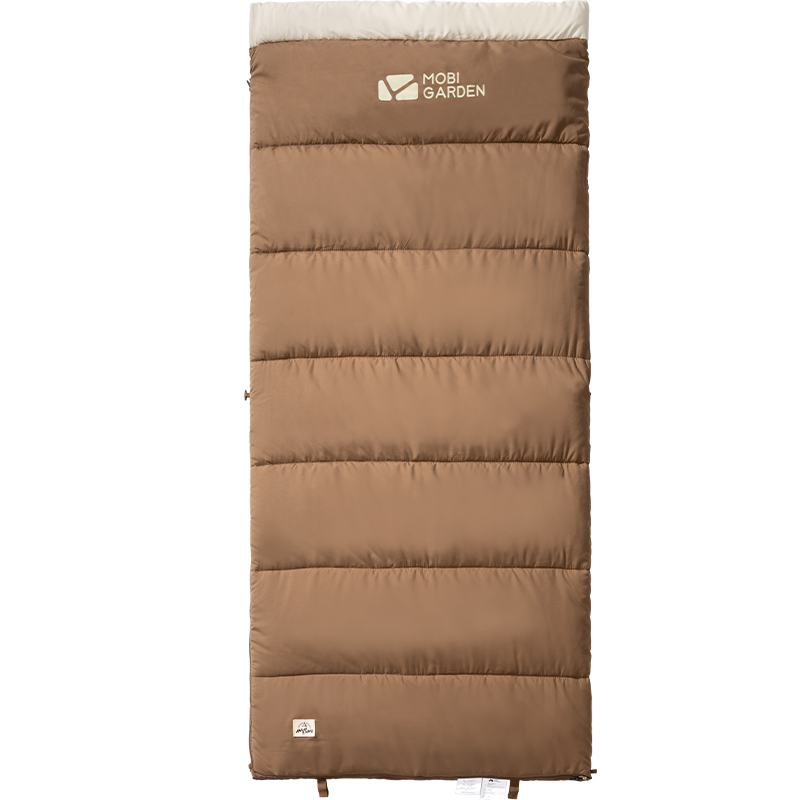 牧高笛(MOBIGARDEN)新月睡袋 户外登山露营保暖加宽可拼接便携信封式磨毛睡袋 单人1.8KG/松露色