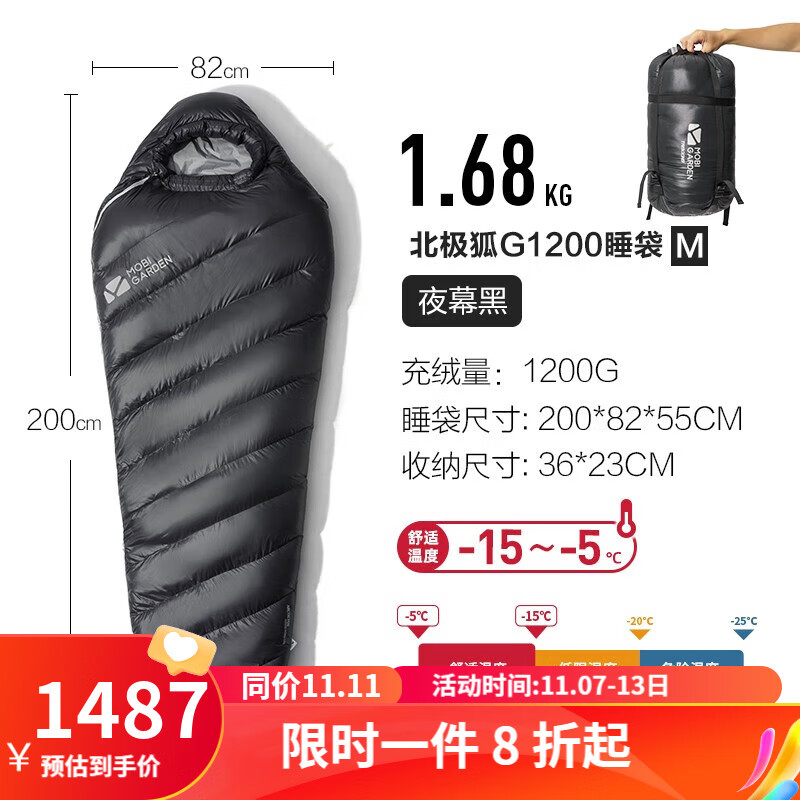 牧高笛(MOBIGARDEN) 羽绒睡袋户外大人北极熊加厚防寒鸭绒防寒保暖超轻高蓬松度睡袋 夜幕黑-G1200M码鹅绒NX21562024