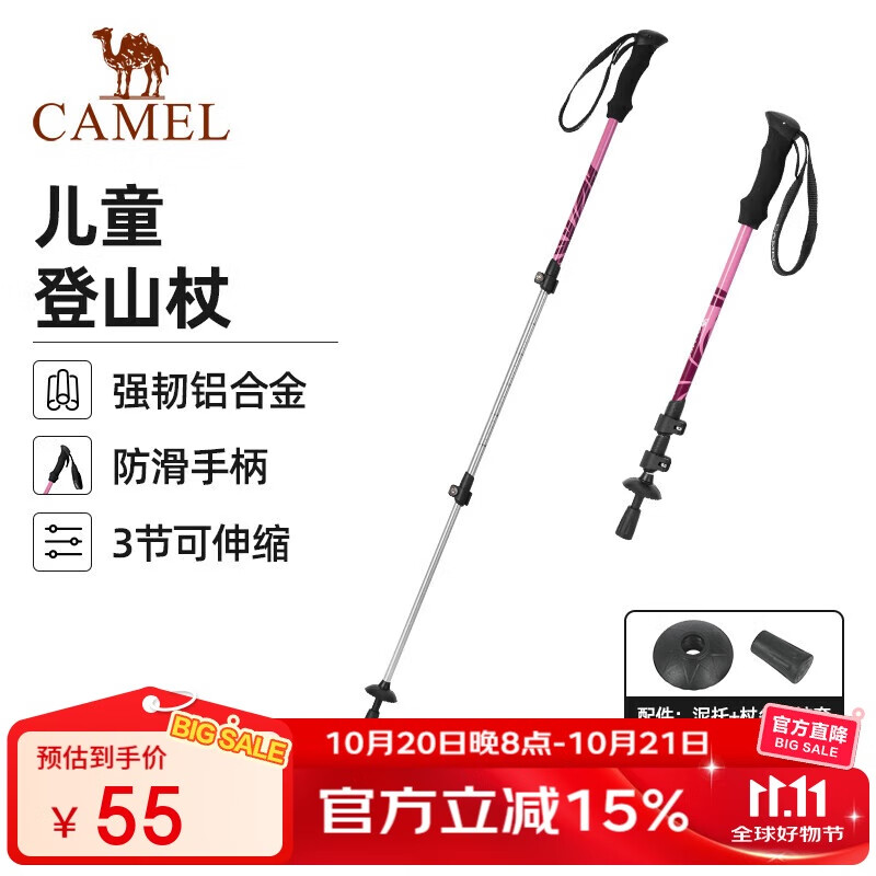 骆驼(CAMEL)儿童登山杖轻铝合金耐磨防滑男女徒步手杖户外伸缩爬山拐杖 P147