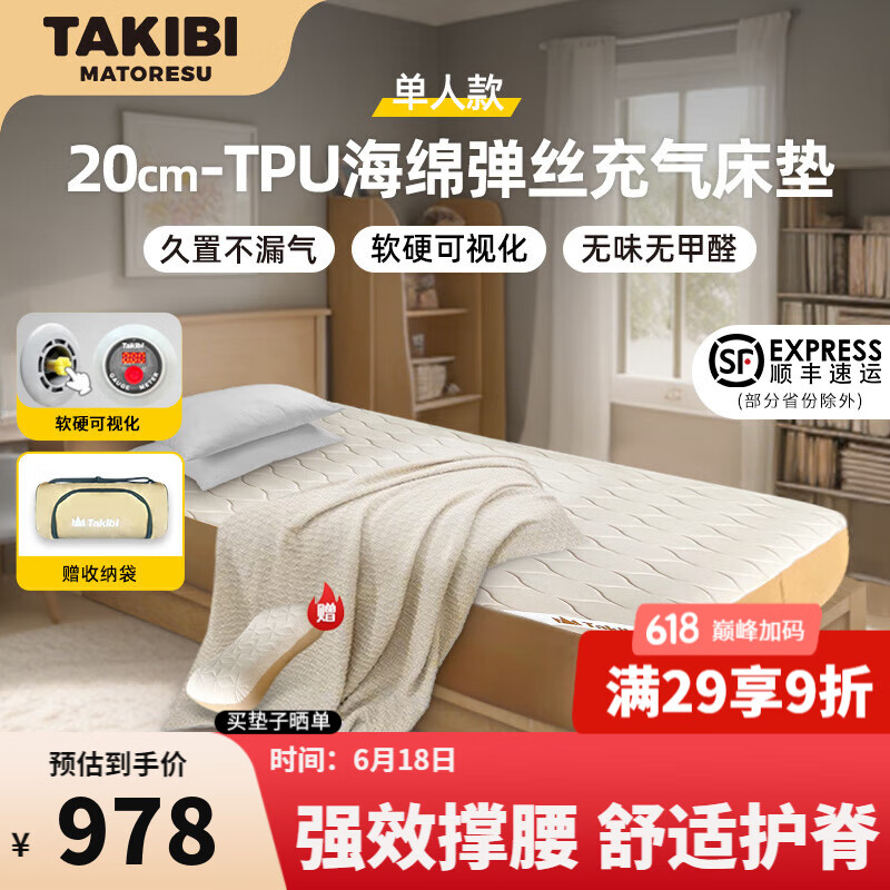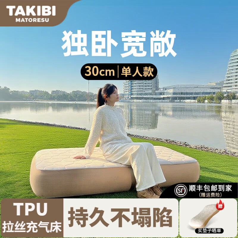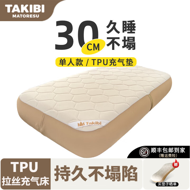 塔吉比(TAKIBI)单人拉丝充气床垫弹丝云床户外露营打地铺气垫床便携帐篷睡垫 30cm单人TPU+无刷泵【带仪表盘】