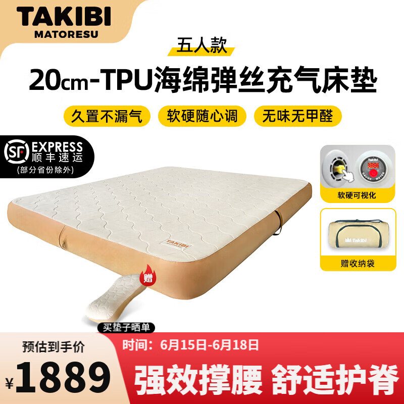 塔吉比(TAKIBI)【浙江国补】充气床垫自动气垫床睡垫打地铺午休户外露营野餐地垫 20cm双人TPU海绵+不含泵+仪表盘