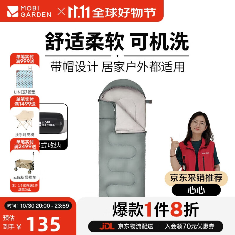 牧高笛(MOBIGARDEN)悠云2.0睡袋 户外露营可拼接单人保暖睡袋 NX23562007 岩石灰/右