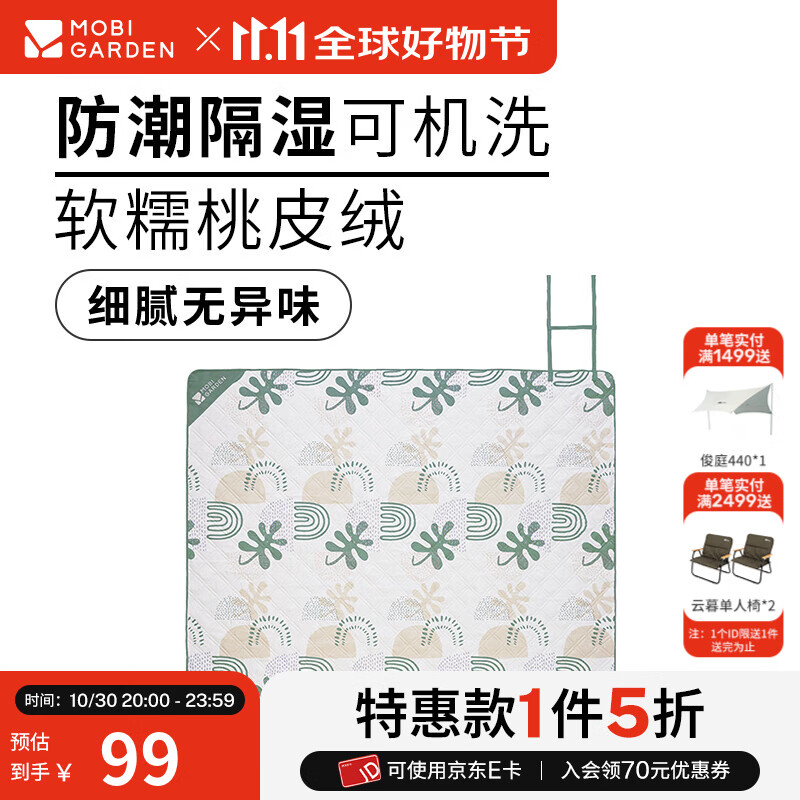 牧高笛(MOBIGARDEN)野餐垫 户外公园露营便携式防潮垫可机洗桃皮绒野餐垫 丛林绿200*240