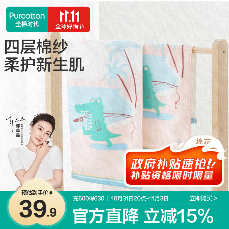 全棉时代毛巾儿童A类纱布无捻纱面巾纯棉洗脸家用柔软吸水塘边垂钓25*50cm