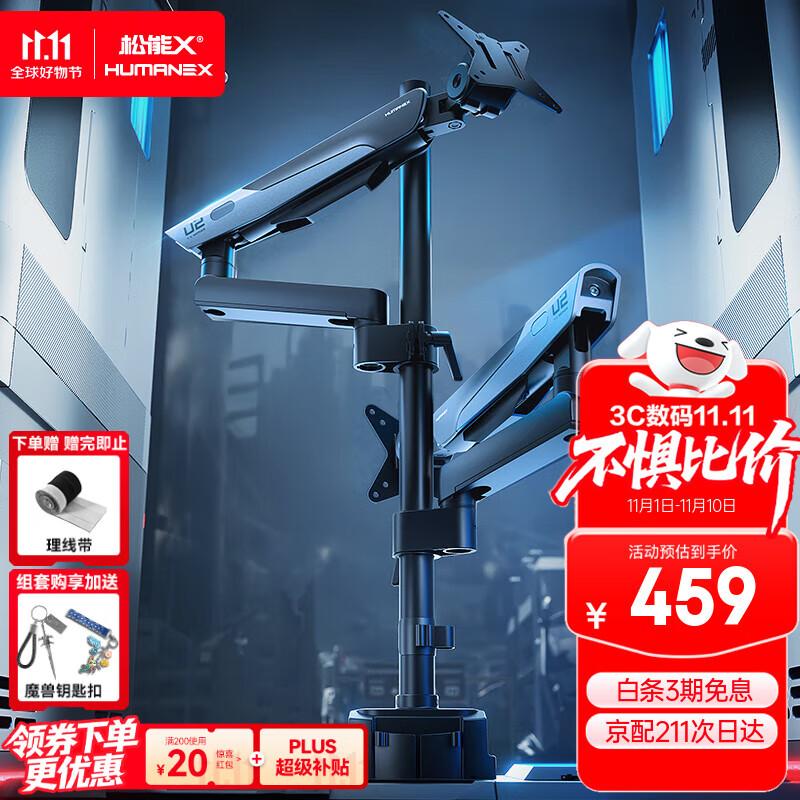 松能X显示器支架电脑显示屏电竞机械臂桌面台式显示器升降支架 适配17-35英寸隐士支架TX02-2PG-01