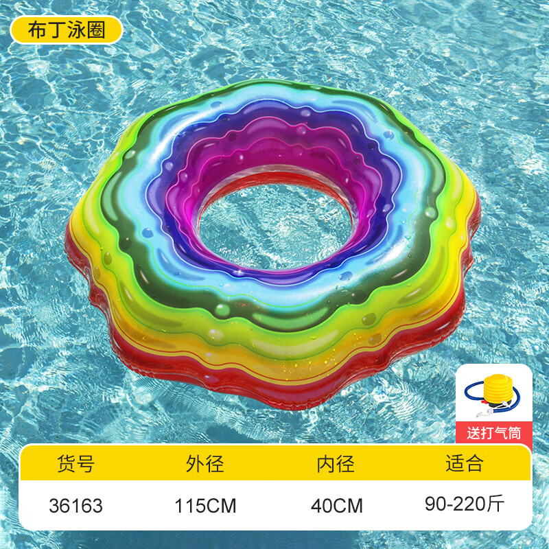 Bestway游泳圈大人充气戏水加厚成人救生圈甜甜圈游泳装备 布丁泳圈(90-220斤)+小黄泵