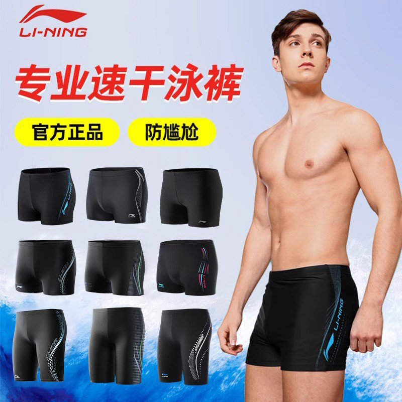李宁男士游泳裤2025新款成人青少年防尴尬泳衣专业平角短裤竞速干