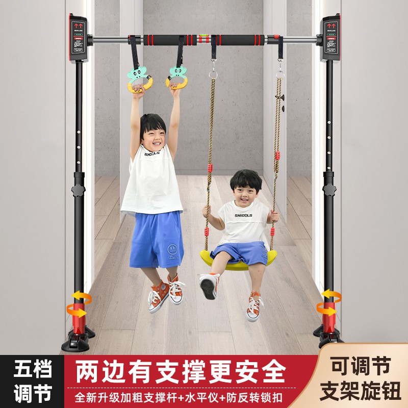 古米熊单杠家用室内引体向上器健身体育运动器材儿童成人门上过道门框瓷砖墙免打孔人体秋千家庭伸缩单杆支架 高端款 适用安装距离98-130CM+秋千+吊环