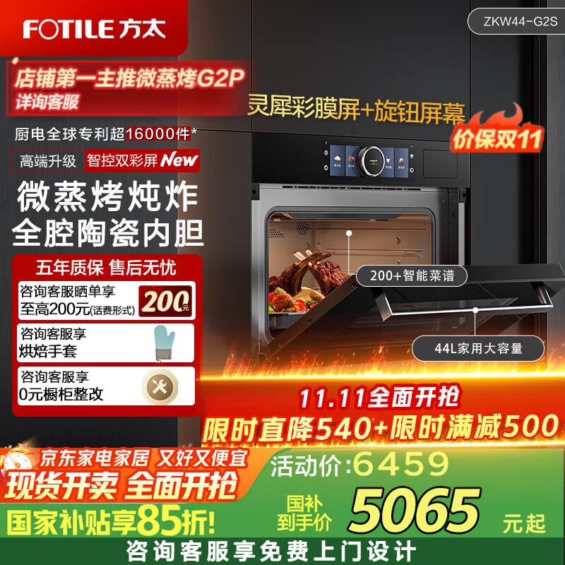 方太微蒸烤一体机G2S嵌入式微蒸烤炸炖功能五合一 44升大容量 国家补贴全腔瓷膜内胆上下分控精准控温