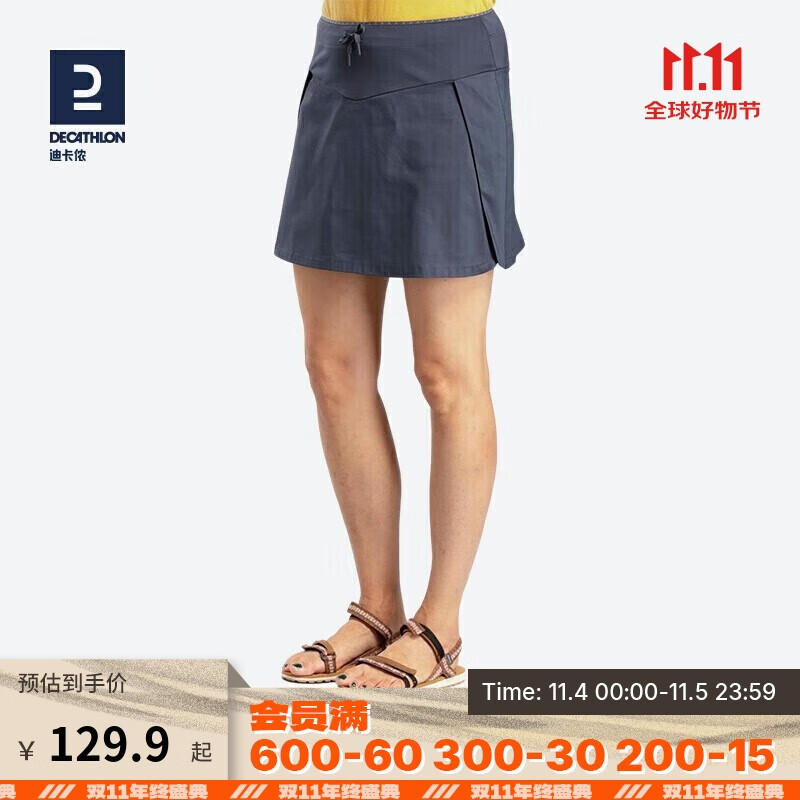 迪卡侬官方运动短裤女跑步户外裙裤QUW黑灰色42-2754924