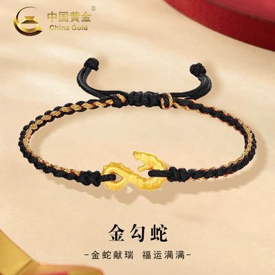 百亿补贴:中国黄金金勾勾蛇黄金手链男女足金生肖转运珠手绳生日礼物送女友
