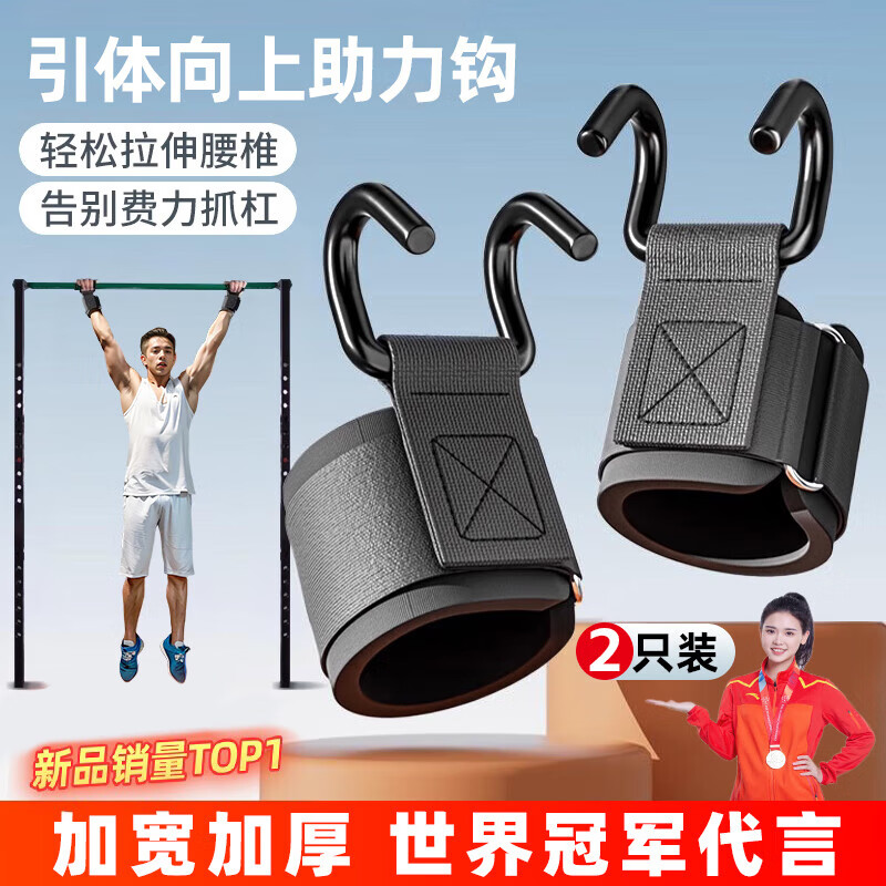 健型师引体向上助力钩健身护腕勾带钩手套辅助器硬拉吊单杠专用抓手防脱 钢钩款助力钩/1对【加厚织带】