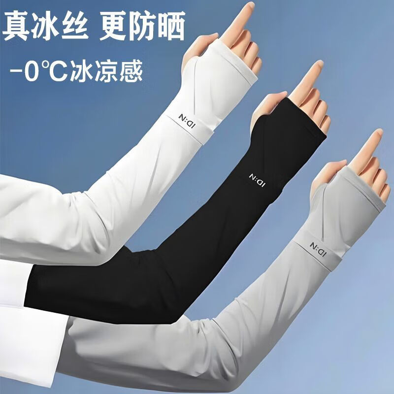 LEOSOXS男袖套女冰丝手袖夏季防紫外线加长薄手套不起球勾丝套指 黑色1件装【防晒】