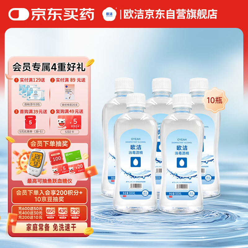 欧洁75%酒精消毒液500ml*10瓶 消毒杀菌家用清洁消毒液酒精喷雾替换装