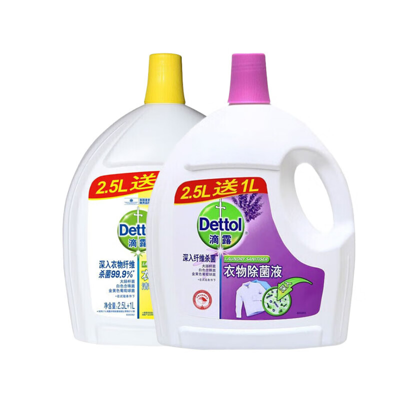 滴露衣物除菌液薰衣草+柠檬 2.5L+1L 两瓶消毒液衣物除菌天然植物提取