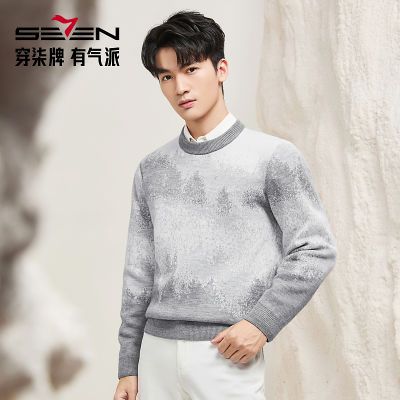 百亿补贴:【7A抗菌/图案提花】柒牌圆领套头毛衫渐变山松树图案上衣