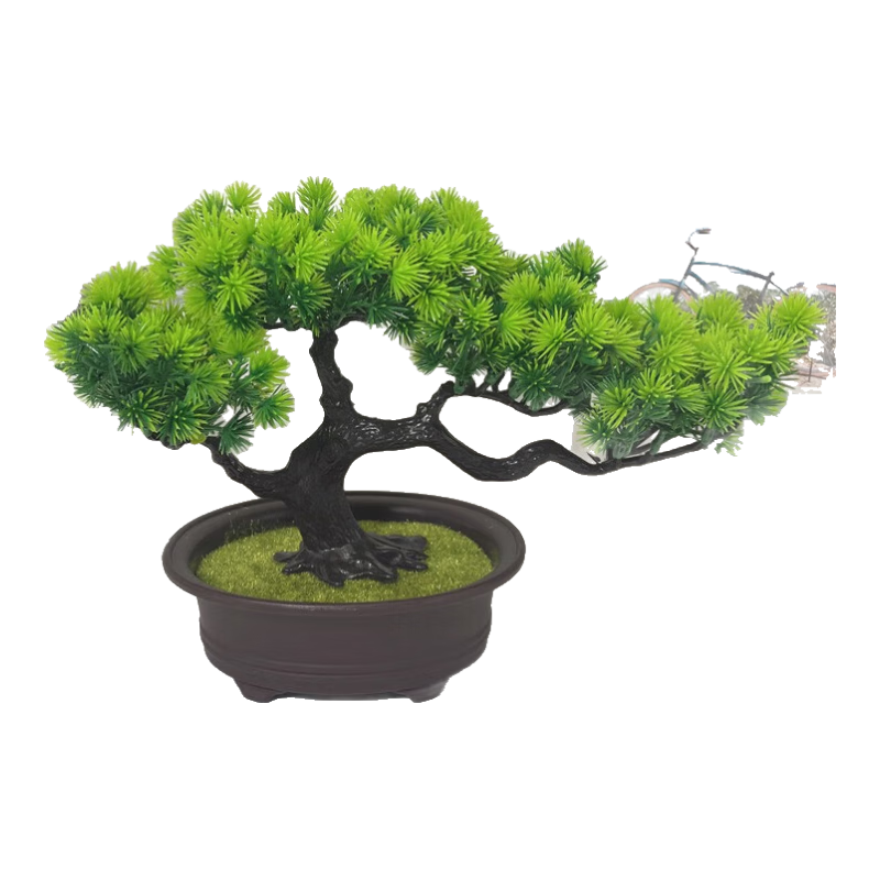 仿真迎客松植物玄关艺术品盆景摆件松树假花摆设绿植盆景桌面假花 仿真龙头迎客松-带盆