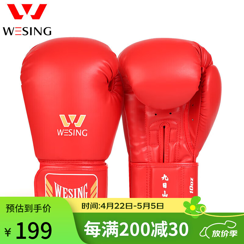 九日山拳击手套 成人散打武术搏击专业拳套打沙包手套训练器材 红色12oz