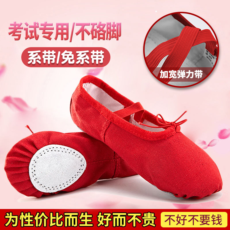 舞蹈鞋儿童女软底练功鞋男女童成人形体猫爪跳舞鞋中国红芭蕾舞鞋