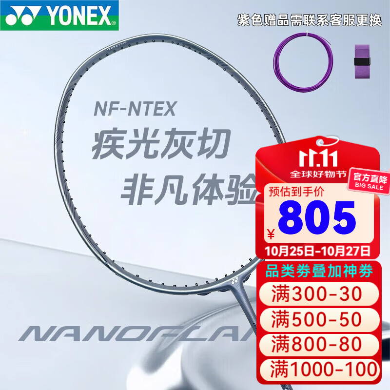 YONEX 尤尼克斯羽毛球拍灰切 yy全碳素银切男女超轻进攻天斧单双拍 疾光NFNT 灰切 国行版本 4U5 可定制磅数/可换线颜色