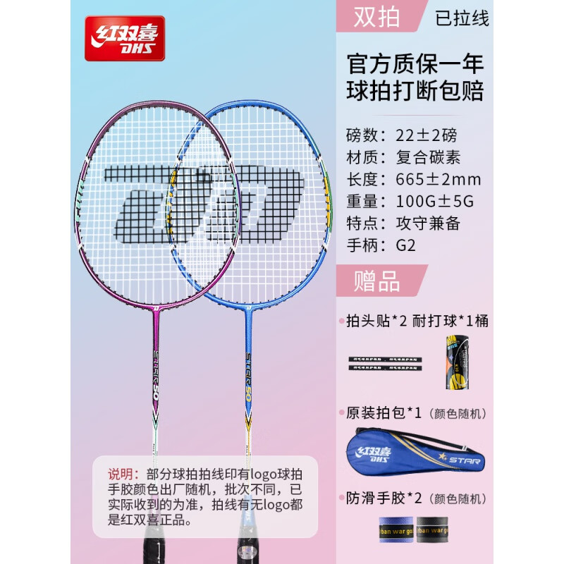 百亿补贴:红双喜可水洗成人专业耐打进攻羽毛球拍正品儿童学生双拍耐用套装