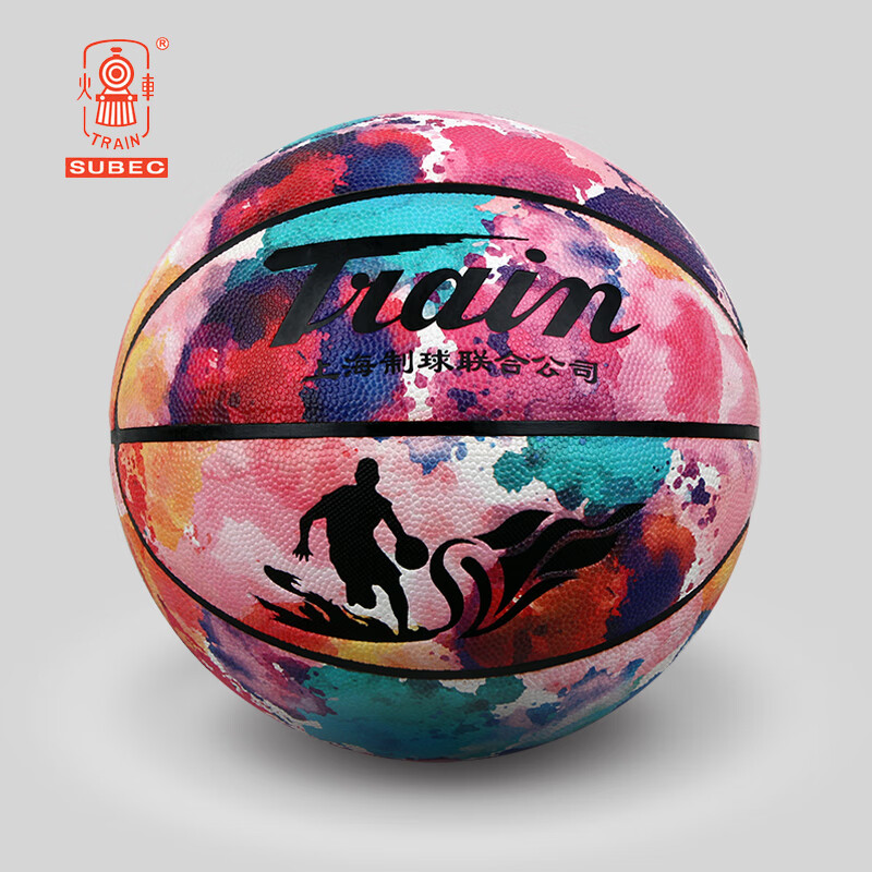 火车头彩色5号6号7号训练比赛小学生专用青少年柔软防滑耐磨蓝球 七号篮球(标准球)