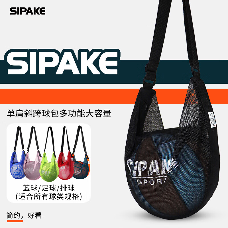 斯帕克篮球包单肩斜挎运动收纳袋排球篮足球大容量手提男女通用便携网兜 单肩斜挎包【黑色】赠网针