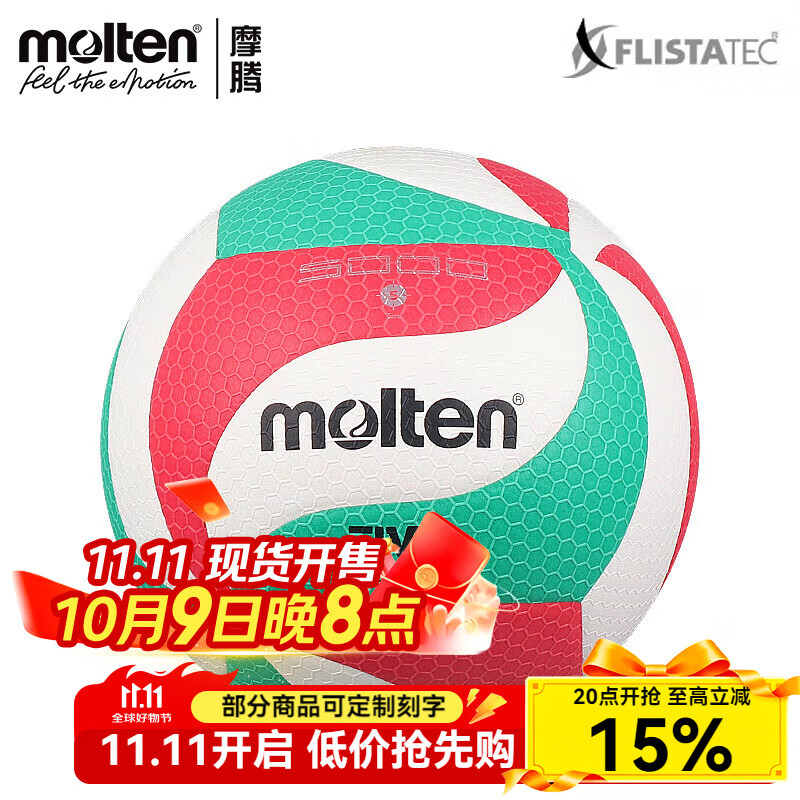 摩腾(molten)官方 排球V5M5000手感柔软5号PU室内专业比赛排球FIVB认证