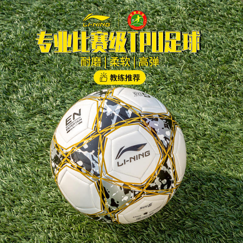 李宁(LI-NING)足球3号儿童训练球TPU机缝青少年小学生幼儿园玩具球少儿比赛球 3号/儿童 【白金】LFQK715-1