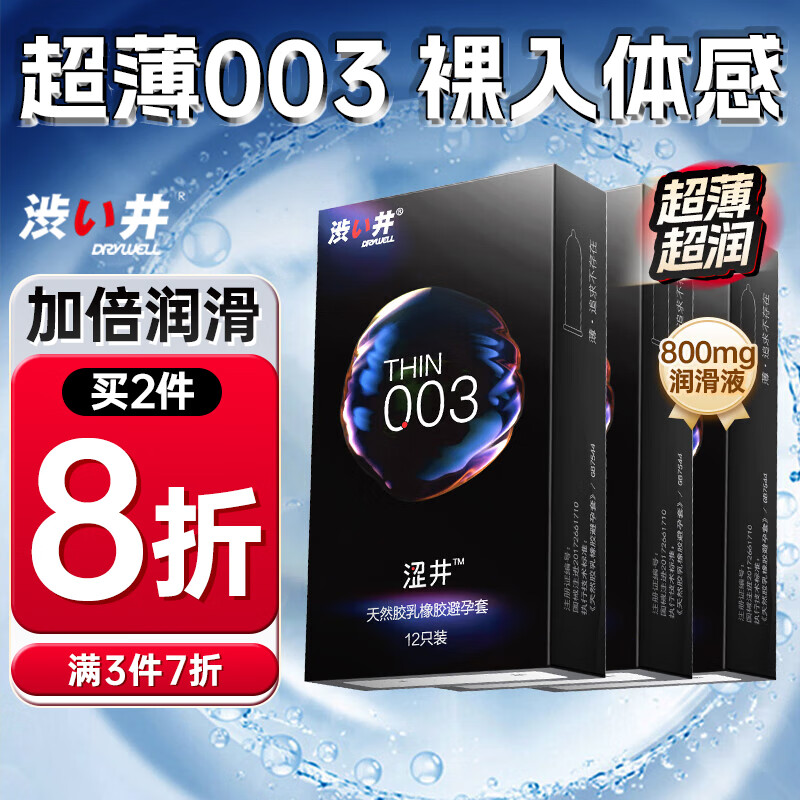 涩井(DRYWELL)003超薄天然乳胶避孕套男用安全套 超滑玻尿酸计生成人情趣性用品 003超薄款 36只