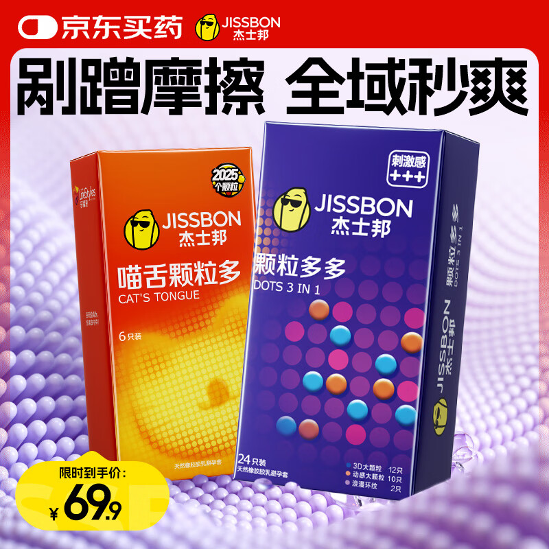 杰士邦超薄避孕套带刺阴颗粒多多24只+喵舌6只安全套女性快潮计生用品
