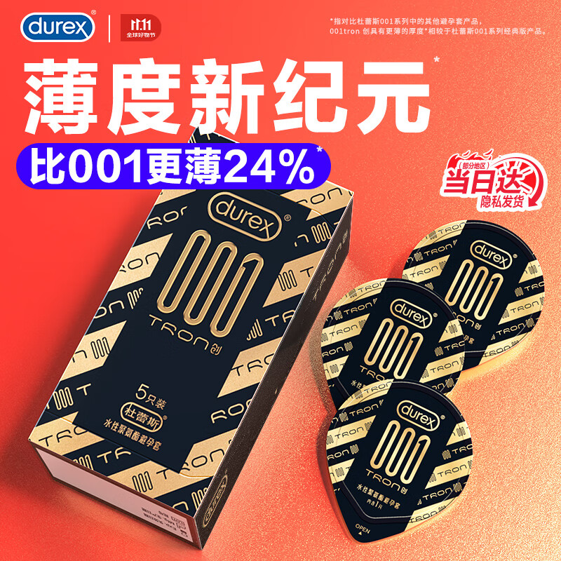 杜蕾斯(durex)超薄避孕套黑金001创TRON 聚氨酯安全套套男女专用情趣用品 001创TRON 5只