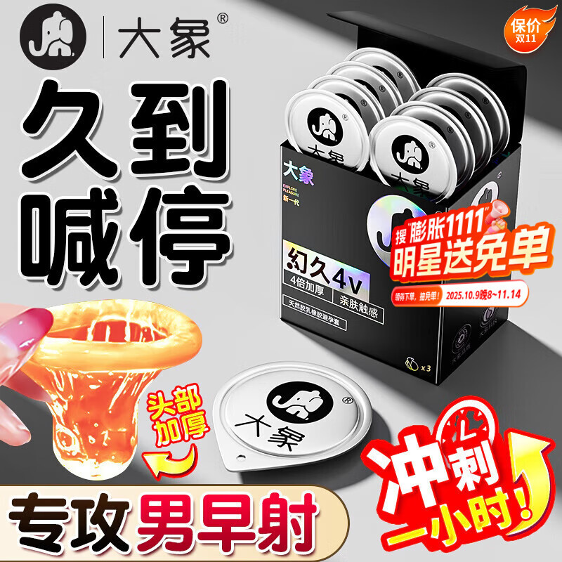 大象延时避孕套安全套持久不射避孕套16只 幻久4倍加厚持久情趣用品