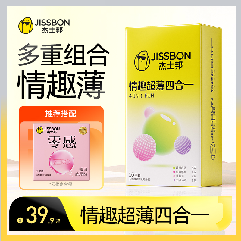 【情趣超薄四合一p】杰士邦避孕套男用变安全套官方旗舰店正品